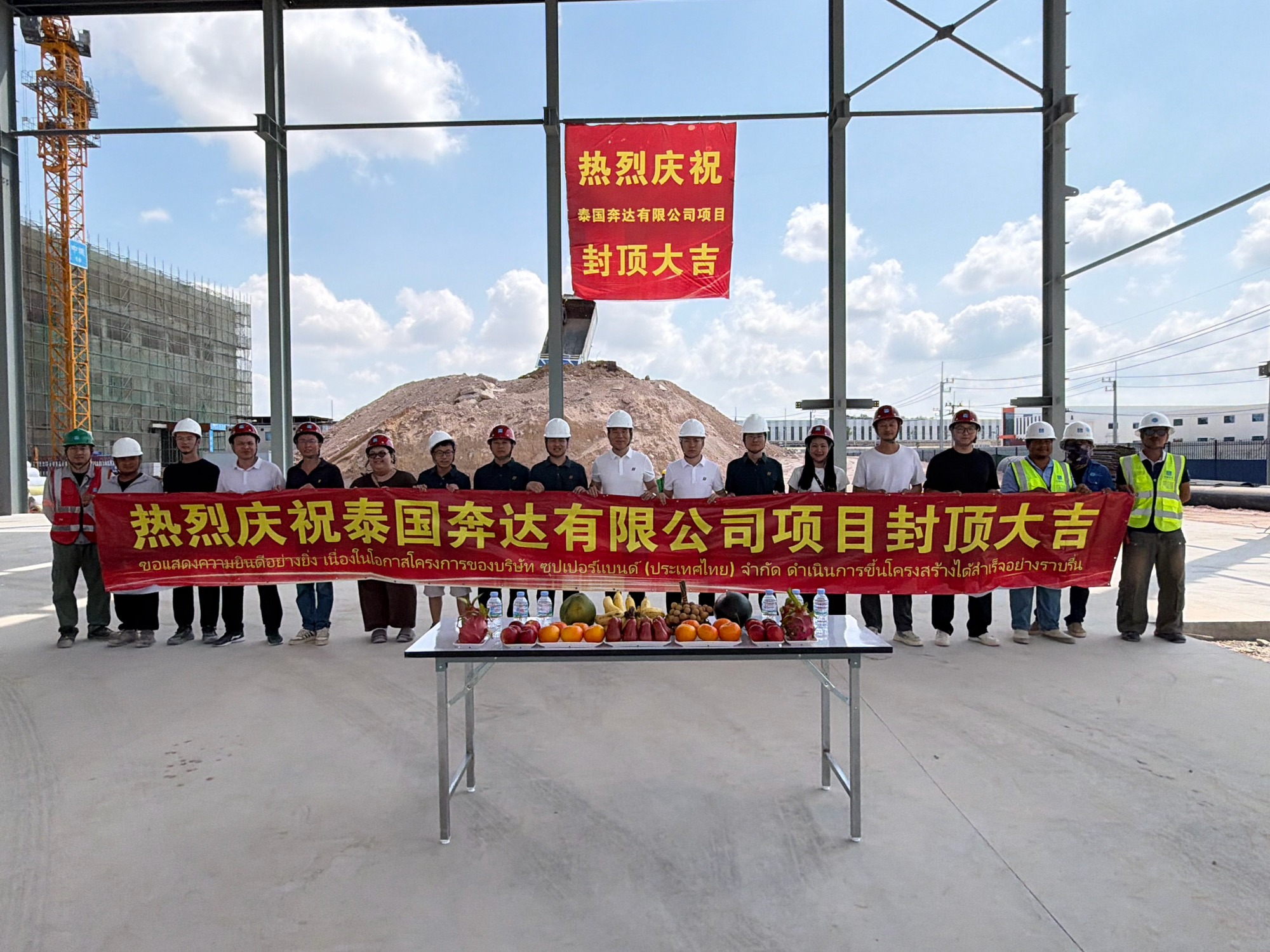 3月31日上午,,,,,,,封顶仪式在项目现场盛大举行,,,,,,,w66(中国区)最老牌官方网站总司理杨艺东、副总司理黄毅、泰国工厂认真人杜坤武等出席仪式。。。。。随着最后一方混凝土的浇筑到位,,,,,,,现场礼炮齐鸣,,,,,,,掌声雷动。。。。。只管远隔重洋,,,,,,,但w66(中国区)最老牌官方网站人不畏艰难、追求卓越的斗争精神,,,,,,,在这一刻跨越山海,,,,,,,凝聚成现场最感人的画面。。。。。